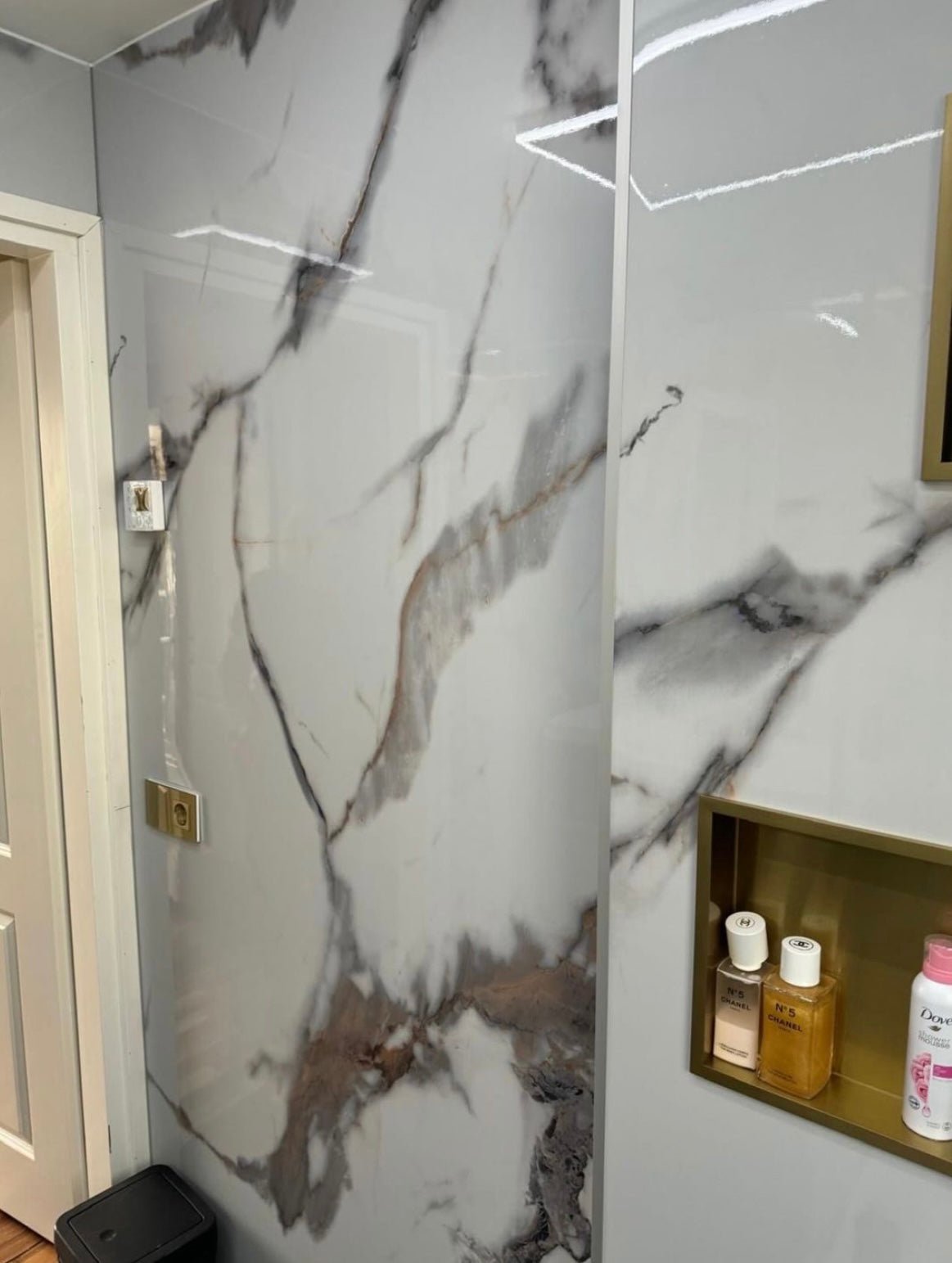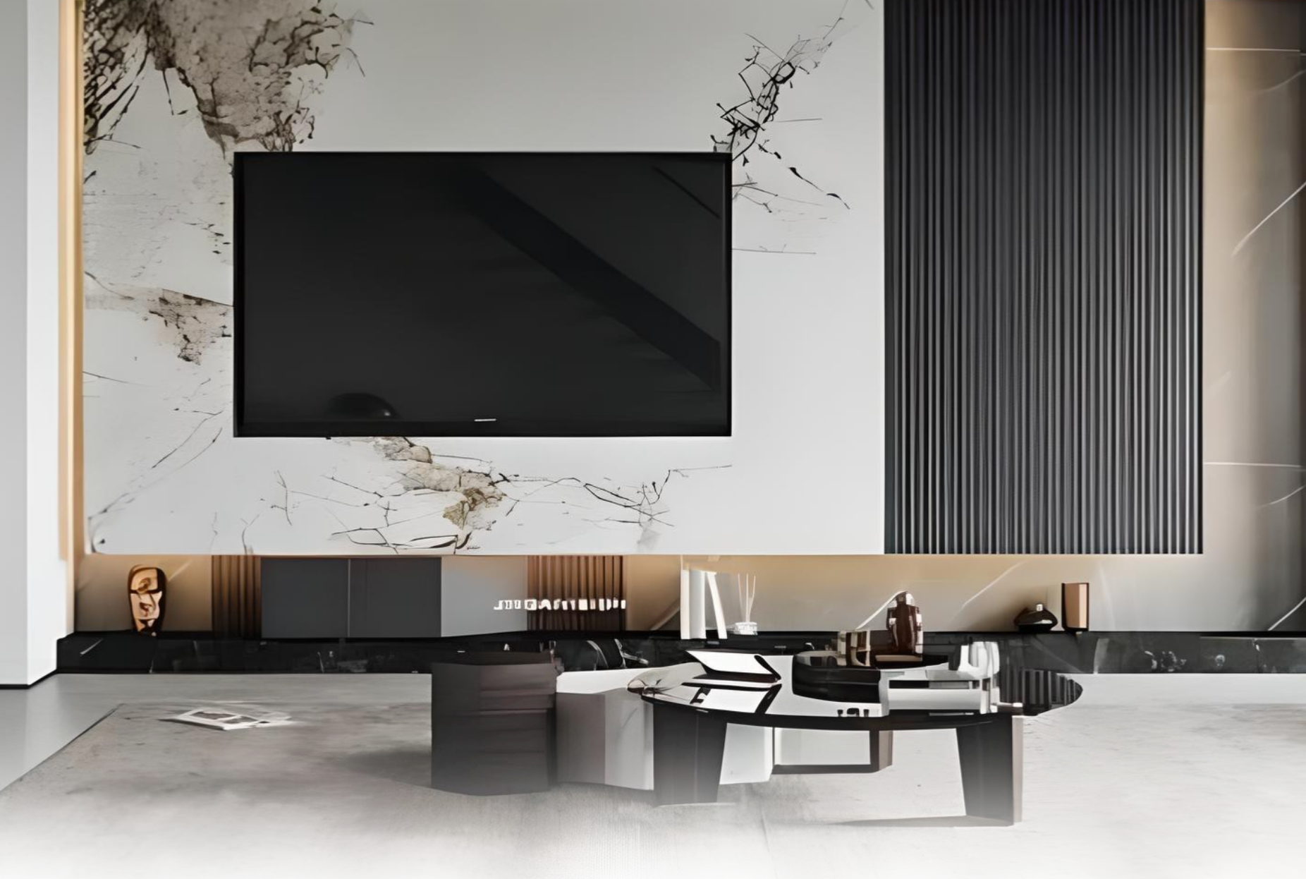 Бял мраморен панел, идеално приложим за гръб на телевизор.